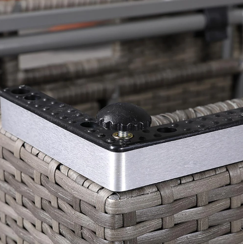 • Durable synthetic PE rattan UV treated: The table is made of durable synthetic PE rattan that is UV treated, making it resistant to fading and weather damage.