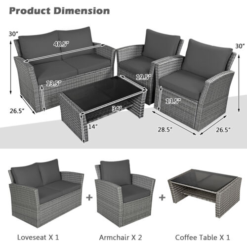 - Comfortable and Stylish: The cushions are weather-resistant and designed for optimal comfort. The elegant grey rattan finish is both stylish and versatile, making it the perfect addition to any outdoor space.